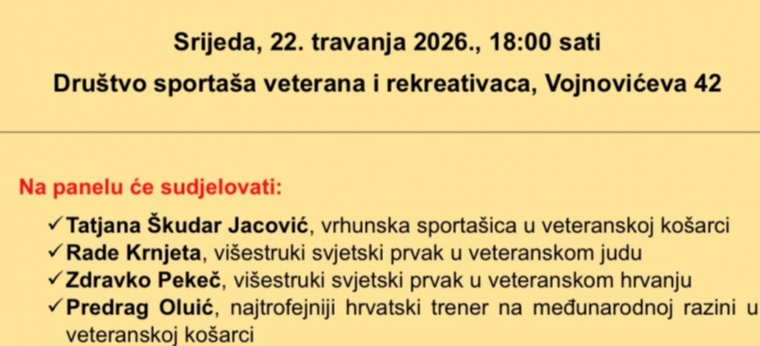 Društvo sportaša veterana i rekreativaca sa zadovoljstvom Vas poziva na panel: I DALJE NA VRHU – LEGENDE KOJE NE PRESTAJU POBJEĐIVATI ...
